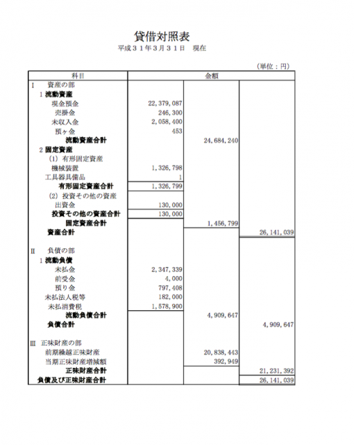 > 平成30年度 貸借対照表